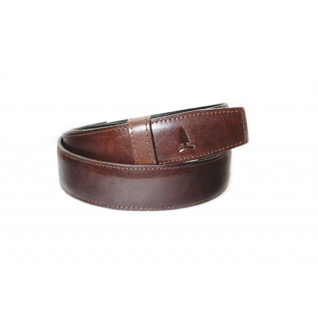 Al onze juiste lederen riemen zijn met de hand gemaakt. De gezichtskant van de riem is gemaakt van bovenste Italiaans gezichtsleer (in het Engels "Top graan leer"), een van de hoogste kwaliteit huidtypen. Het is een halfstap huid waar de huid het sterkst is en de beste eigenschappen heeft. De achterkant van de riem is gemaakt van een onderste laag leer.